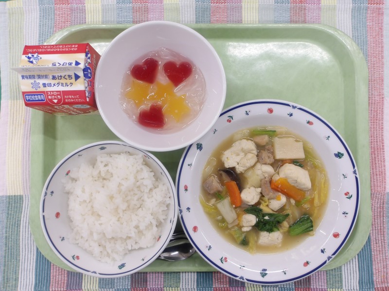 12月23日(火) 2025/12/23 ごはん 豆腐と野菜の五目うま煮 ゼリーポンチ 牛乳 12月22日(月)🔷行事食:冬至 2025/12/22 🔷冬至うどん いかのかりんとう揚げ 🔷野菜のポン酢がけ 🔷花みかん 牛乳 12月20日 PTA もちつき大会 2025/12/22 PTA主催によるもちつき大会を開催いたしました。子どもたちの元気な掛け声とともに、臼と杵を使った本格的な餅つ...