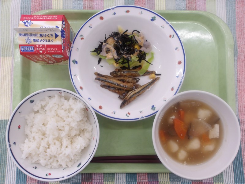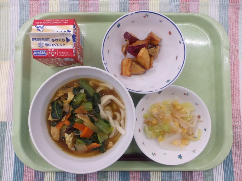 2月6日(金) 2026/02/06 カレーうどん みそドレサラダ 大学いも 牛乳 2月5日(木)🔷かみかみメニューの日 2026/02/05 ごはん 🔷きびなごの香味揚げ ひじきとれんこんのごまマヨ和え じゃがいも団子汁 牛乳 ... 2月4日(水)🔷食べよう野菜350メニューの日 2026/02/04 ごはん ごま塩 野菜2皿分の回鍋肉 コーンと卵のスープ 八朔 牛乳
