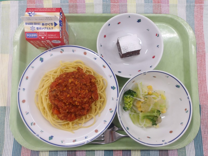 2月13日(金) 2026/02/13 スパゲティミートソース ヴィネグレットサラダ ガトーショコラ 牛乳 2月12日(木) 2026/02/12 ごはん 麻婆豆腐 春雨サラダ 牛乳 2月10日(火) 2026/02/12 コッペパン ポークブラウンシチュー こまツナサラダ 牛乳