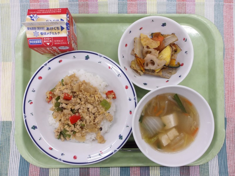 2月26日(木) 2026/02/26 ガパオライス 野菜チップス 春雨スープ 牛乳 2月25日(水)6年生が家庭科の授業で考えた献立 2026/02/25 コッペパン コロッケ 枝豆サラダ かぼちゃスープ 牛乳 2月24日(火)6年生が家庭科の授業で考えた献立 2026/02/25 わかめごはん 鶏のから揚げ 菜の花と卵の炒め物 なめこと小松菜のみそ汁 牛乳
